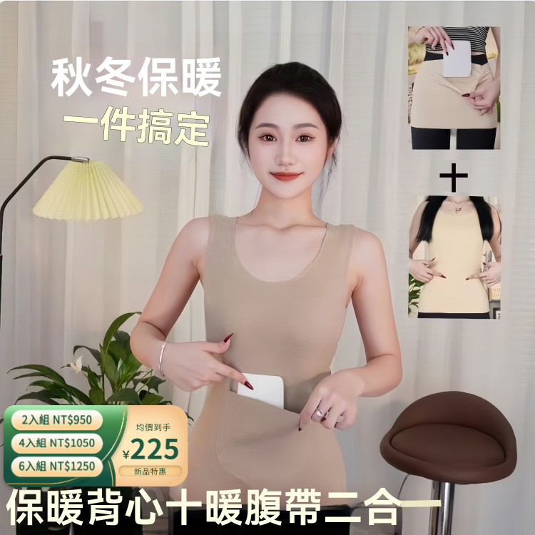 【雙兜保暖背心】前後加口袋德絨暖腹無痕修身磨毛女款打底衣 秋冬必備!大碼可穿到90公斤!